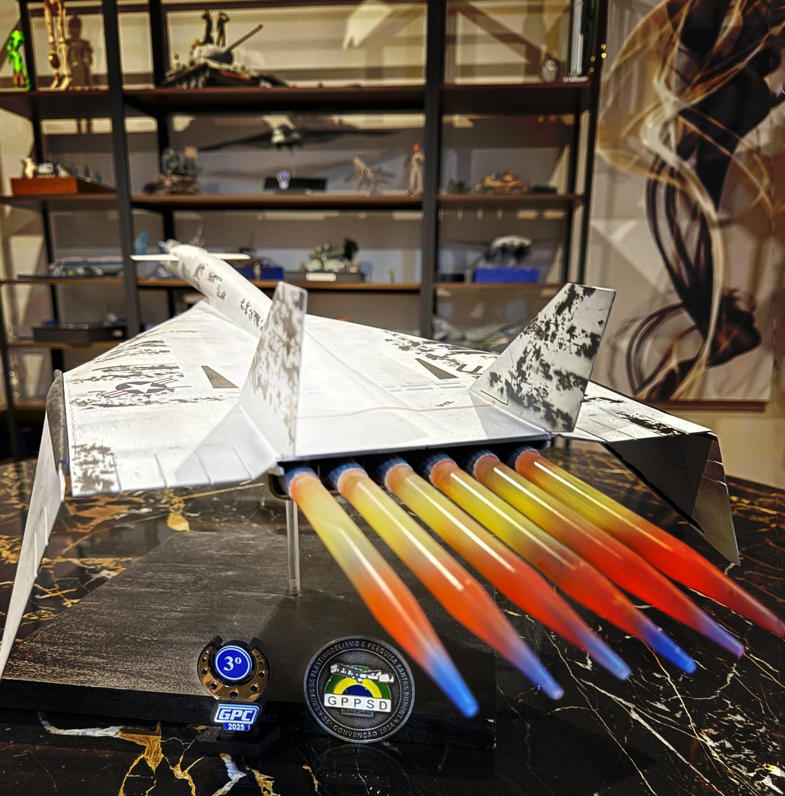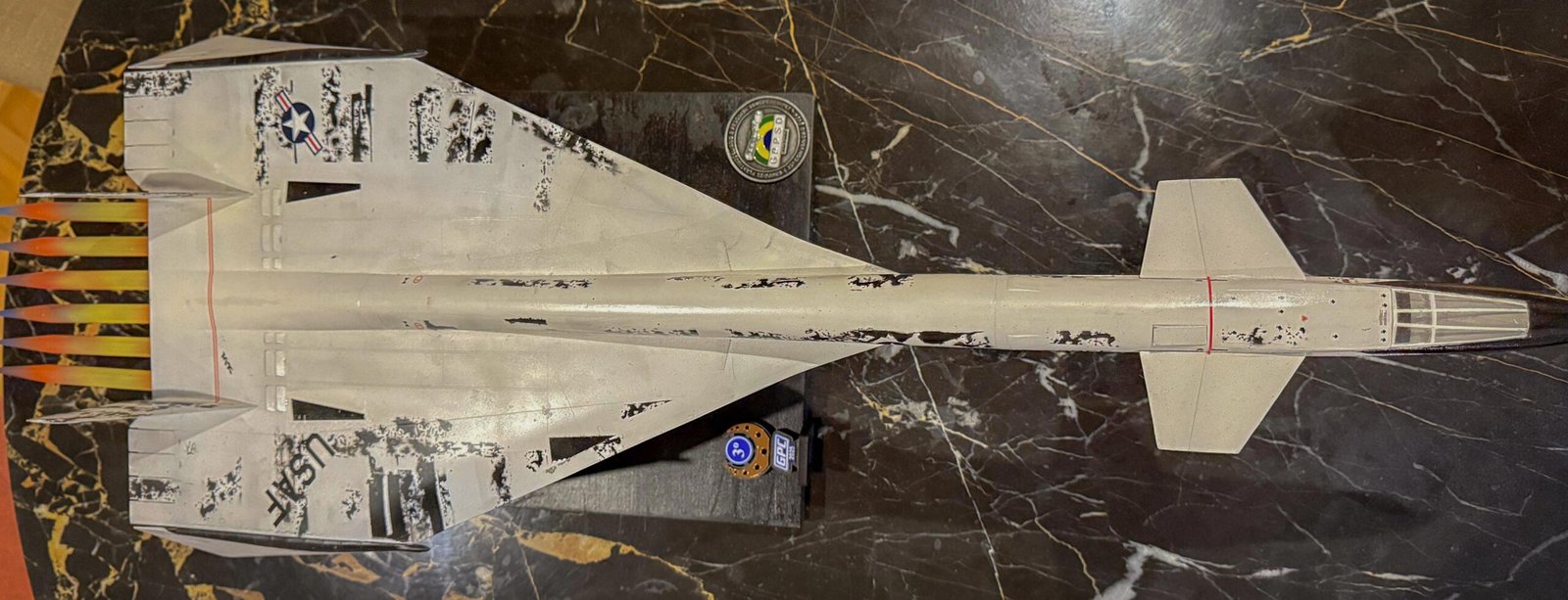 E nessa evolução toda, dos kits de aeronaves da Italeri que já montou, lembra com entusiasmo do B-52G Stratofortress e do imponente XB-70 Valkyrie, ambos em escala 1/72, sendo o último já premiado como destaque e terceiro lugar em São Paulo e Campinas. “Ele é gigante, lindo e até hoje o bombardeiro mais rápido já produzido. Fiz efeito de velocidade, com os seis afterburners ligados simulando fogo, pintura toda descascada como no modelo real. É uma peça única, com cerca de 80 cm. Foi uma das minhas maiores satisfações.”