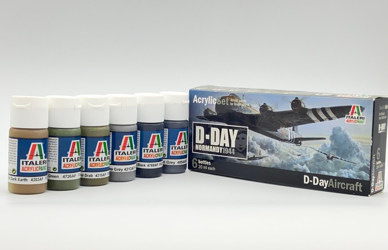 Cada conjunto contém 6 frascos de Tintas Acrílicas Italeri (20ml cada)