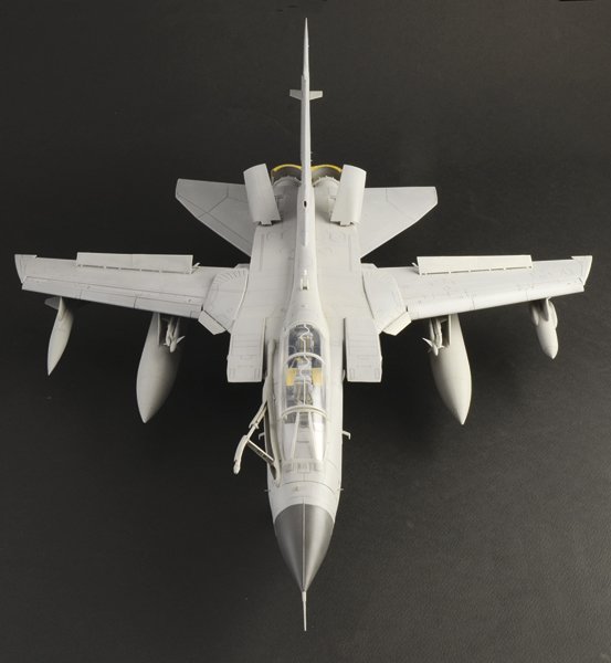 TOP KIT MOLDES 100% NOVOS – 361 peças – photo-etched detalhado – Motor RB199 removível com carrinho de suporte – Flaps e Slats estendidos ou retraídos – Ailerons móveis – Radome de abertura e radar altamente detalhado – Reversores de empuxo abertos ou fechados – Freios aerodinâmicos abertos ou fechados – Rodas de borracha – Asas de geometria variável e postes giratórios – Coberturas de borracha para a área de retorno das asas – Instruções de cores – Super decalque para 4 versões FIGURA NÃO INCLUÍDA O projeto Tornado nasceu da colaboração da Itália, Alemanha e Reino Unido para a criação de um aeronaves de combate multifuncionais com alto desempenho de vôo. Foi assim desenvolvida uma aeronave bimotora, com configuração de dois lugares e asas de geometria variável para melhor responder à sua função principal: caça-bombardeiro supersónico de baixa altitude capaz de “seguir” o perfil do terreno. O Tornado IDS (Interdictor/strike) foi o primeiro a ser utilizado pelos departamentos de operações de voo da Força Aérea Real Britânica com a designação GR.1. Em 1996 o Tornado foi “atualizado” para o padrão Gr.4 caracterizado por melhores capacidades operacionais, novos sistemas aviônicos de navegação e adoção de nova tecnologia de bordo para identificação e rastreamento de alvos capazes de gerenciar a nova geração de armamento ofensivo disponíveis, como bombas GBU-12 Paveway IV.