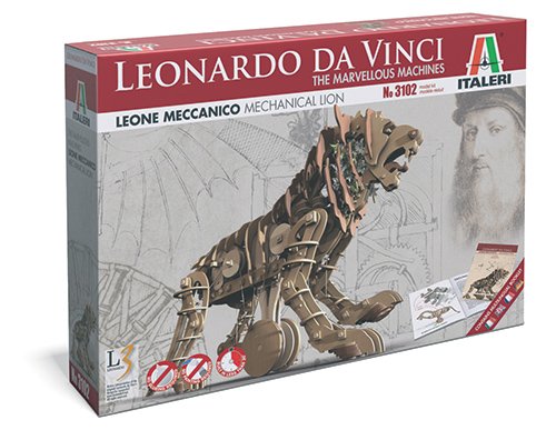 Caderno histórico da PRM não incluído desde Junho de 2013 Nas folhas 90/v e 91/r do Códice de Madrid desenham-se mecanismos “estranhos” que não estão ligados ao tratado mecânico e muitas vezes sem texto explicativo. A sua análise levou à reconstrução de dispositivos que permitem os movimentos robóticos de um animal misterioso, um leão mecânico. O leão, uma homenagem do Papa Leão. Pode ser considerado um dos primeiros robôs semelhantes a animais já construídos.