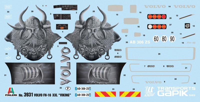 PEÇAS CROMADAS ADICIONAIS – PNEUS NOVOS – AROS CROMADOSA série FH foi um ponto de viragem na produção de veículos comerciais Volvo. Introduzido no mercado em 2001, estava disponível em inúmeras versões e variações. Em particular, o Volvo FH16 poderia ser considerado o modelo topo de gama da nova gama. Alimentado por um motor de 16 litros capaz de entregar 610 cv, apresentava uma boa relação potência-economia. O Volvo FH16 também adotou soluções eletrónicas avançadas, para a época, capazes de garantir uma condução segura e confortável mesmo em viagens longas. O FH-16, graças ao seu bom sucesso comercial, foi a base sobre a qual foram criados numerosos Show Trucks com pinturas caracterizadas por um alto impacto visual. O “Viking” é um bom exemplo de Show Truck. A adoção da barra de proteção com as grades para proteção da unidade de luz dianteira, a instalação dos faróis adicionais, a cor escolhida e os gráficos claramente de inspiração nórdica criam um caminhão com personalidade forte e único.