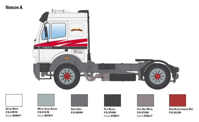 SUPER DECALQUE PARA 3 VERSÕES – FOLHA DE INSTRUÇÕES DE CORES Os caminhões Mercedes-Benz da série SK, onde a sigla significa Schwere Klasse e identifica os veículos pesados da linha, foram produzidos a partir do final da década de 1980 pelo famoso grupo alemão . A série SK é uma evolução direta da linha anterior Mercedes NG, com melhorias na cabine mais adequadas para viagens longas. O conforto a bordo também foi ampliado com a adoção de novas soluções técnicas e eletrónicas. O design, em comparação com a série anterior, também foi significativamente melhorado para torná-lo adequado aos padrões estéticos típicos da indústria “automotiva” da época. Foi apreciado pelo mercado pela sua confiabilidade, robustez e flexibilidade operacional em todo tipo de utilização. A sua longevidade no mercado está de facto correlacionada com o seu bom sucesso comercial. A série SK foi substituída a partir do final da década de 1990 pelas primeiras versões do novo Mercedes-Benz Actros.