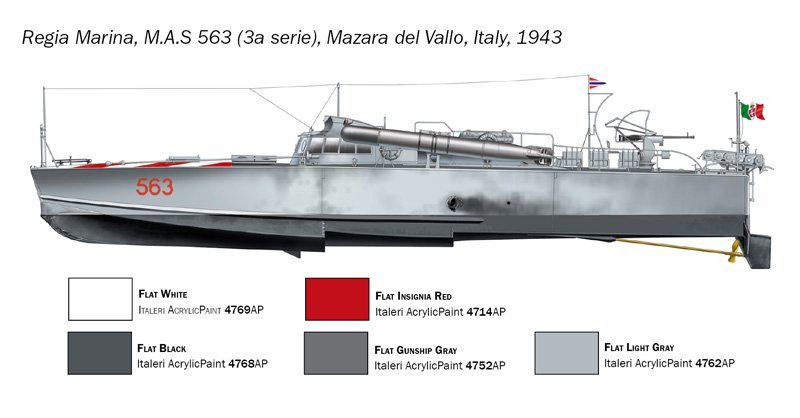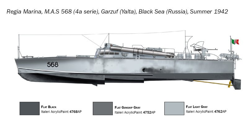 CONTÉM 6 FIGURAS – FOTO-ETCHED – ACETATO TRANSPARENTE – PARAFUSOS, CORDAS E ACESSÓRIOS A Marinha Real Italiana, desde a Primeira Guerra Mundial, tem prestado grande atenção ao desenvolvimento de barcos pequenos e rápidos geralmente armados com torpedos. Os torpedeiros armados, mais conhecidos pela sigla MAS, eram barcos de origem civil direta. Durante a Primeira Guerra Mundial os resultados obtidos foram absolutamente significativos com o naufrágio, pelo Comandante Luigi Rizzo, dos couraçados da Marinha Austro-Húngara Wien e Szent István. Embora fossem adequados para mares fechados e calmos como o Adriático, a Marinha italiana continuou a trabalhar para melhorar o desempenho dos pequenos mas rápidos torpedeiros. Os MAS 500, equipados com os novos motores a gasolina Isotta-Fraschini, mais potentes e fiáveis, construídos durante a Segunda Guerra Mundial, foram utilizados tanto como torpedeiros como como plataformas anti-submarinas destinadas ao lançamento de cargas de profundidade. Eles podiam atingir uma velocidade máxima de 45 nós e estavam armados com dois torpedos de 450 mm.