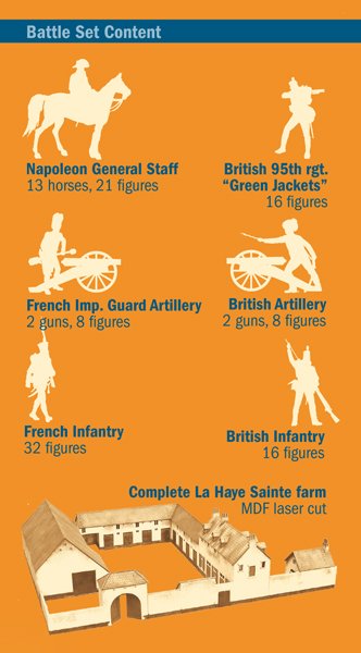 De 16 a 18 de junho de 1815, as tropas francesas e as tropas da coalizão aliada se enfrentaram nos campos de batalha da Bélgica. Ligny e Quatre-Bras anteciparam a famosa e mais famosa batalha da história militar. Uma data, um lugar: 18 de junho de 1815, Waterloo. Wellington considerou a fazenda de La Haie Sainte um ponto fundamental para basear a sua formação defensiva. À tarde, Napoleão ordena ao marechal Ney que conquiste a fazenda para obter um posto avançado estratégico e poder mudar o destino da batalha. A posição é fortemente defendida pelas tropas aliadas, que desde a manhã fortificaram o complexo de edifícios. O confronto é acirrado e as tropas francesas, apoiadas pela artilharia, conseguem conquistar La Haie Sainte apenas no final da tarde. Às 19h00, graças ao valor estratégico da quinta, a Guarda Imperial Francesa pode iniciar o assalto mas já será tarde demais. As tropas prussianas de Blucher, perseguidas em vão pelo marechal Grouchy, aparecem em números supranumerários na direita francesa.