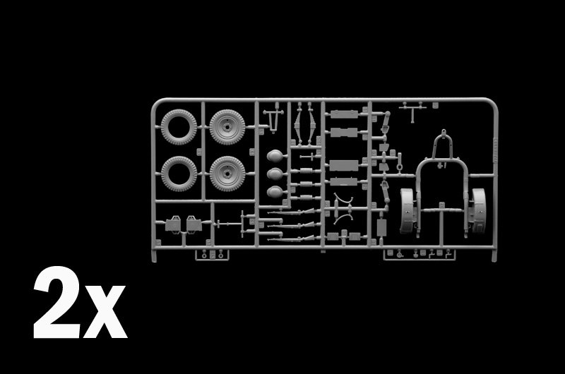 Os trailers do SD O Anhanger 51 poderia facilmente ser empregado por um grande número de veículos da Wehrmacht. Destinavam-se principalmente ao transporte de munições e eram frequentemente associados a veículos armados, como meias-lagartas equipadas com canhões antiaéreos Flak de 20 mm. Além de transportar munições, durante as campanhas militares, muitas vezes eram usados para transportar todo tipo de material. O quadro em U baixo era extremamente robusto e adequado para qualquer uso on-road e off-road. CONTÉM 2 MODELOS
