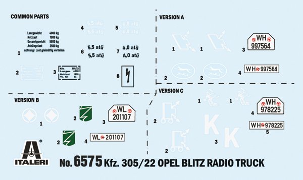 INSTRUÇÕES DE CORES – PNEUS DE BORRACHA O Opel Blitz foi o principal caminhão alemão da Segunda Guerra Mundial. Utilizado substancialmente em todas as frentes e em grande número, pode ser considerado a verdadeira “mula” de carga da Wehrmacht. O chassis, o robusto sistema de amortecedores de eixo rígido com molas de lâmina e o eixo traseiro com rodas duplas foram capazes de suportar uma carga útil de mais de 3 toneladas. O motor Opel de 3.600 cc, de fácil manutenção, debitava 75 CV. A versão mais difundida foi a 4×2 com tração traseira. Porém, existia uma versão 4×4 que operava tanto em terras russas quanto nos desertos africanos. Feito em vários milhares de exemplares, graças à sua flexibilidade e grande compartimento de carga traseiro, o Opel Blitz também foi utilizado em outras tarefas além do puro transporte, como o posto de comando móvel equipado com sistemas de rádio para transmissão de ordens e coordenação de tropas no campo de batalha.