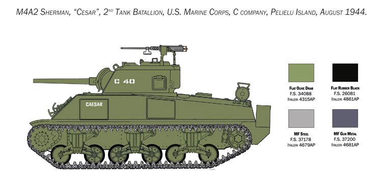 NOVAS TRILHAS COLÁVEIS T54E1 – DECALQUES PARA 4 VERSÕES – FOLHA DE INSTRUÇÕES DE CORES O tanque médio M4 Sherman foi sem dúvida o veículo blindado mais difundido e utilizado durante a Segunda Guerra Mundial. O M4 formou a espinha dorsal das forças blindadas da América e foi produzido em inúmeras versões e variantes. Seu verdadeiro ponto forte, porém, foi o projeto de construção. O Sherman era na verdade barato, confiável e fácil de produzir em grandes quantidades. A versão M4A2 usava um motor Twin G41 Diesel produzido pela General Motor. A intenção era apoiar o esforço de guerra de países aliados, como a União Soviética e a Grã-Bretanha, mas numerosos exemplos também foram usados pelo Corpo de Fuzileiros Navais. Utilizados ativamente nas batalhas de reconquista dos arquipélagos do Oceano Pacífico, desempenharam um papel fundamental na destruição das poderosas fortificações construídas pelo exército japonês.
