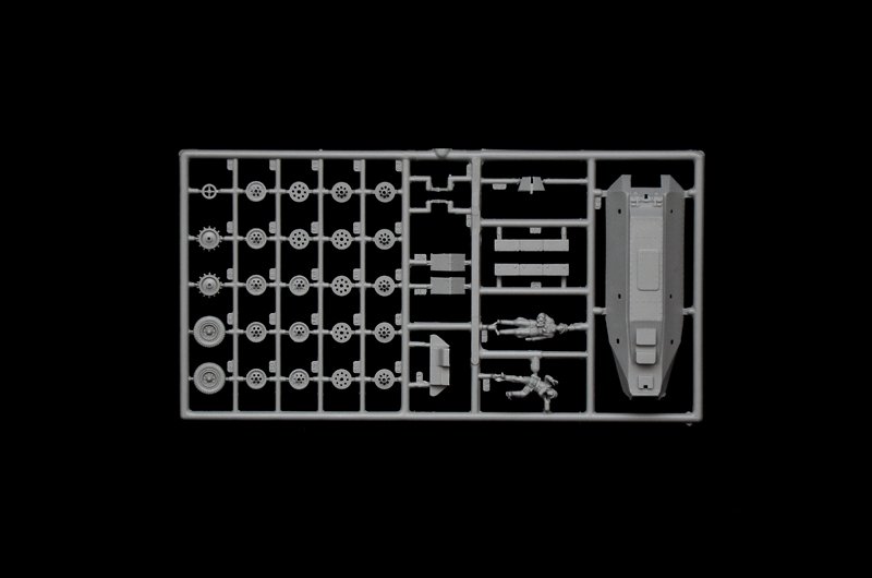 FOLHA DE INSTRUÇÕES DE CORES O veículo de transporte de tropas de meia pista Sd.Kfz.251 foi usado pela Wehrmacht em todas as frentes, e em grande escala, durante a Segunda Guerra Mundial. Alimentado por um motor a gasolina Maybach de 6 cilindros, era capaz de atingir os 55 km/h, mesmo em terrenos difíceis. Foi usado principalmente como veículo de combate de infantaria, mas, durante a guerra, foram produzidas numerosas versões para cumprir tarefas operacionais cada vez mais especializadas. A meia pista Sd.Kfz. 251/8 Krankenpanzerwagen foi montado e usado como ambulância blindada para a recuperação de feridos próximos à linha de frente. No seu interior podia acomodar até oito feridos sentados ou quatro feridos e duas macas e estava equipado com equipamento médico para primeiros socorros.