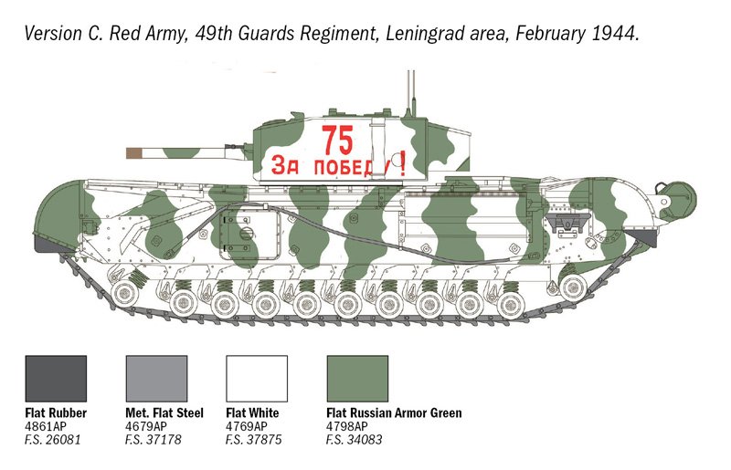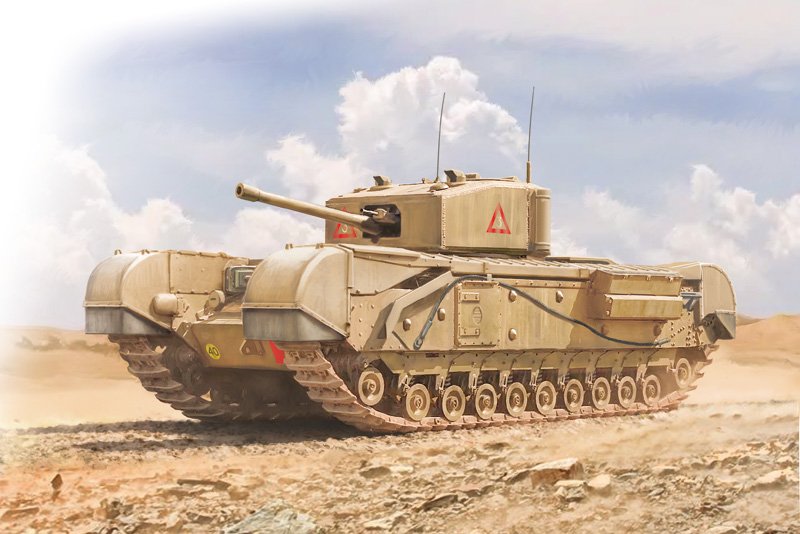 TRILHAS DE BORRACHA GLUÁVEIS – INSTRUÇÕES DE CORES 1 FIGURA INCLUÍDA O tanque médio Churchill entrou em serviço no Exército Inglês em 1942 para acompanhar e substituir os anteriores Valentine, Matilda e Crusader, que estavam todos desatualizados, ou inadequados, no que diz respeito à durabilidade, proteção e armamento necessário para enfrentar os tanques alemães da época. Equipado com boa blindagem e motor confiável, o veículo mostrou-se robusto e confiável, tanto que ao longo dos anos seguintes foi fabricado em versões cada vez mais eficientes. Vários veículos de apoio especializados também foram construídos com base nele, como o vagão de remoção de minas, o construtor de pontes e o lança-chamas.